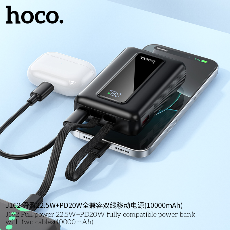 “J162 Full power 22.5W+PD20W fully compatible power bank with two cables(10000mAh) (UN)”
